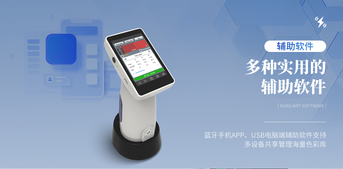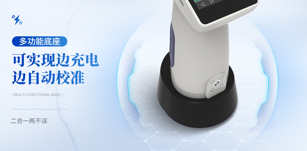 | 1. 機身設計小巧輕便,方便隨身攜帶。 | 2.測量穩定數據準確:臺間差ΔE*ab<0.4,保證多臺設備測量結果的準確、一致、穩定。 | 3. 開機自動校準:自帶開機自動校準功能,使用方便,校準便捷,客戶無需為校準大費周章。 | 4. 支持多種測量模型:多至34種顏色空間、11種色差公式、26種測量光源,總能適合您的需求。 | 5. 配備多功能底座,可實現給儀器邊充電邊自動校準的功能,二合一兩不誤。 | 6. 多種實用的輔助軟件:藍牙手機APP、USB電腦端輔助軟件支持,多設備共享管理海量色彩庫。 | 7. 一鍵生成并分享測量報告,品質管控好幫手。 | 8. 強勁的鋰電池供電,為您的顏色品質管控保駕續航。 |