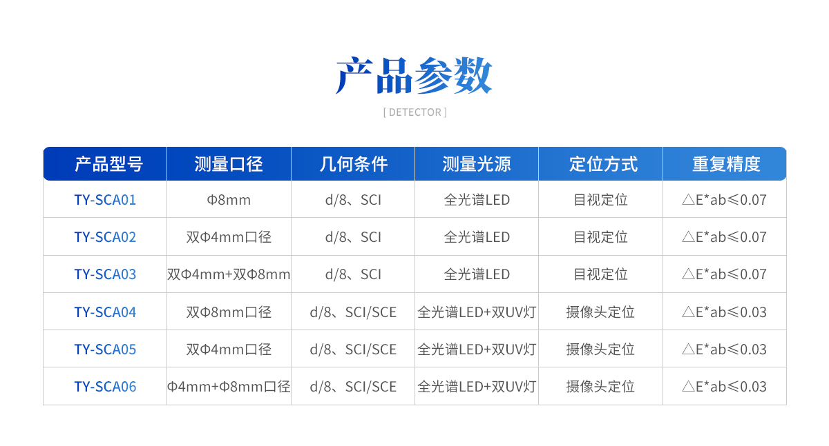 | 型號:TY-SCA01 測量口徑:Φ8mm 幾何條件:d/8、SCI 測量光源:全光譜LED 定位方式:目視定位 重復精度:△E*ab≤0.07 顏色空間:CIE-Lab、CIE-LCh、Luv、Hunter-Lab、XYZ、Yxy、sRGB、DIN LAB99、CMYK (A/T/E/M/I) 實地密度、Munsell、反射率(明視覺)、黑度、YI黃度、同色異譜(跳燈)、遮蓋力、著色力/力度/染料強度、色牢度、Taube白度、Berger白度、Tappi白度、Cros白度、Stephansen白度、甘茨白度(Ganz)、Hunter白度、白度(ASTM)、白度(CIE)、AATCC白度、R457/ISO2470白度、GB/T17644白度 色差公式:ΔE*ab、ΔE*ch、ΔE*uv、ΔE*HunterLab、ΔE*CMC(l:c)、ΔE*94、ΔE*00、ΔE*sRGB、ΔE*BFD、ΔE*FCMII、ΔE*DIN99 標準光源:A、C、D50、D55、D65、D75、F1、F2、F3、F4、F5、F6、F7、F8、F9、F10、F11、F12、CWF、U30、U35、DLF、NBF、TL83、TL84 觀察者:10°(CIE1964)/2°(CIE1931) 波長間隔:10nm 波長范圍:400nm-700nm 校準:自動 是否過計量:過計量 顯示精度:0.01 測量速度:1.0s 操作方式:電容觸屏 屏幕:3.5寸全彩液晶屏 底座:磁吸底座,自動吸附能更好嵌合主機和固定塊 電池容量:充滿電連續測量10000次 接口:Type C / 藍牙 語言:簡體中文、繁體中文、English APP平臺:Android/IOS/Windows 存儲:機身存儲標樣90條,試樣9000條,另支持App海量存儲 體積:184x93x62mm (不含底座) 重量:320g (不含底座) 物品清單:儀器機身、校準底座、 TYPE C數據線、充電器、說明書、保修卡、測量口徑2個(雙8mm口徑版) |