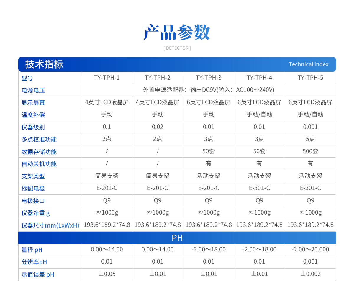 產品概述:TPH系列臺式酸度計是一臺實驗室常規分析測量儀器,它適用于醫藥、環保、衛生、地質探礦、高等院校和科研單 位的實驗室,測量樣品溶液的pH值。產品優點:1.顯示標定、測量和數據穩定符號及溫度、電極斜率。2.支持背光和恢復出廠、手動溫補、連續測量模式功能。3.支持數據存儲、刪除和查閱(PH50-3/4/5)及數據打印和
