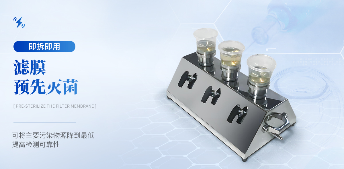 微生物限度專用檢查儀,基于薄膜過濾法的原理,與微生物培養器(S60)配套使用,通過液泵的抽濾作用,在系統內部形成負壓,供試品在壓差作用下被過濾,可能存在的微生物被濾膜截留,通過沖洗濾膜(如有必要),除去抑菌成分,然后反澆培養基進行培養,已檢驗供試品含菌量。主要用于各類水質、藥品、食品等介質中微生物檢測及實驗室中進行除菌、除微粒等。具有操作過程不易受到污染、易于清潔等特點。